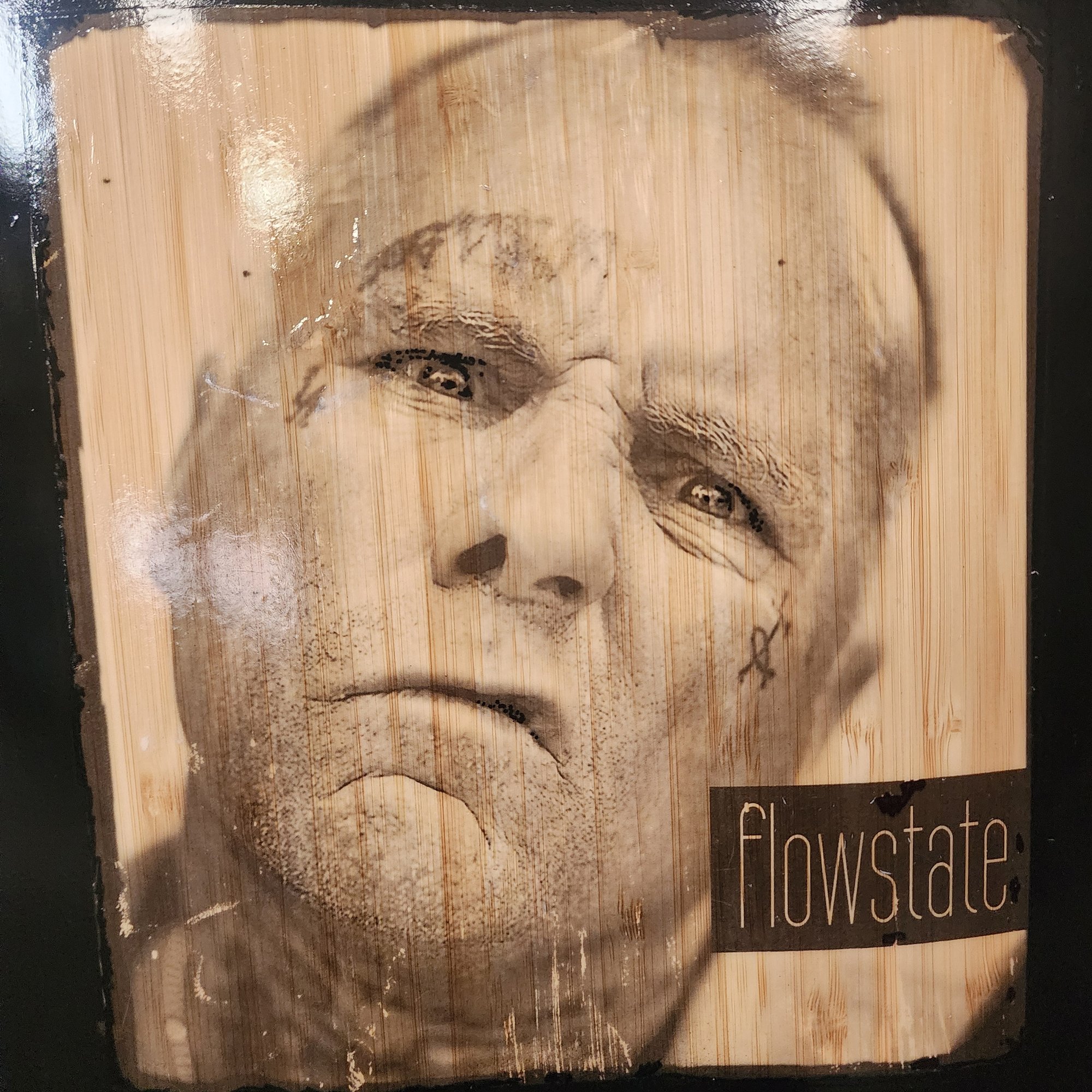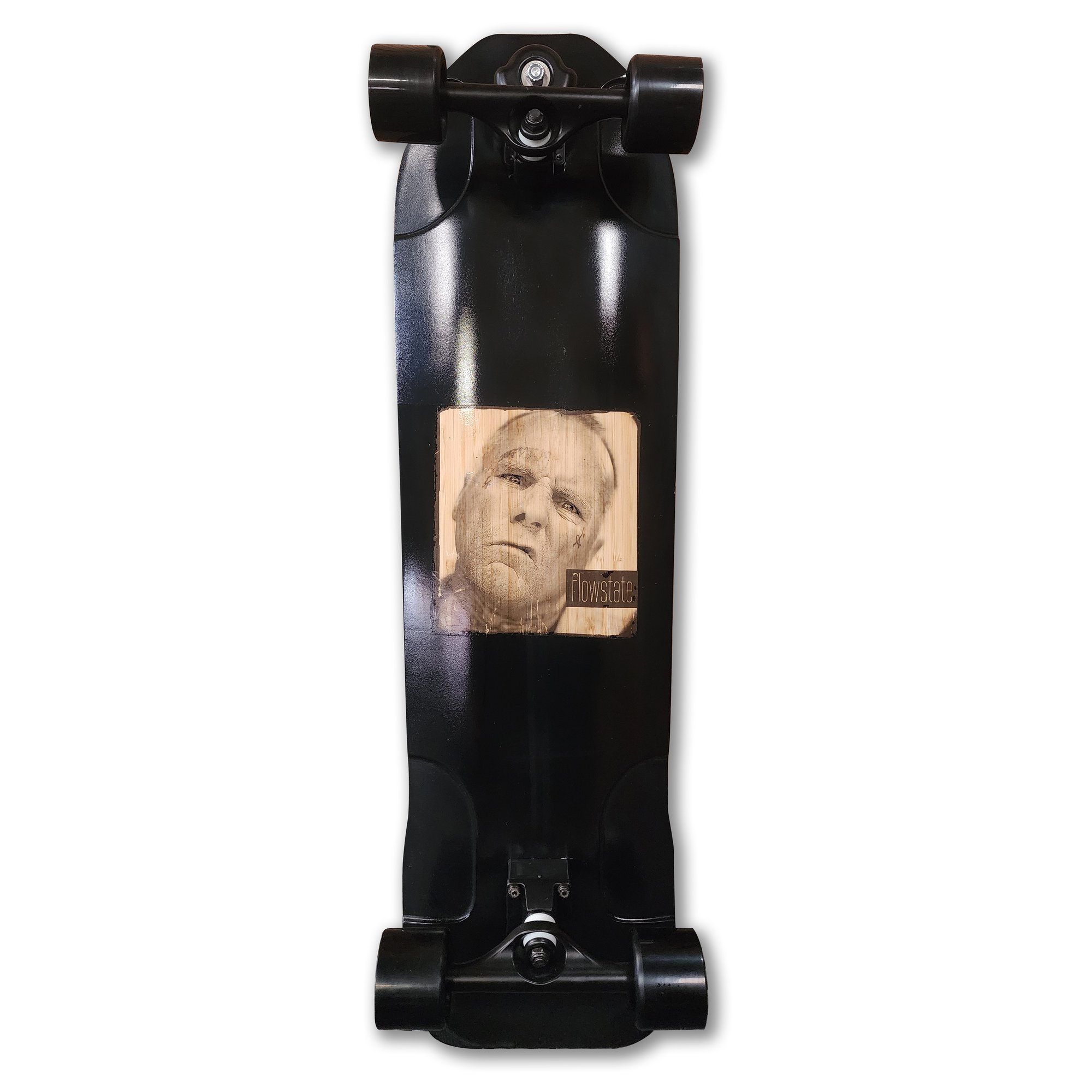 Raw polished bamboo, plant-based ink, craft modge-podge logo. This is a process based on the environment, it isn't a mass-produced deck/graphics. Imperfections are part of the art. Jay Adams graphic transferred using a craft technique of 'Modge-podge' and using plant based inks, and plant based lacquer